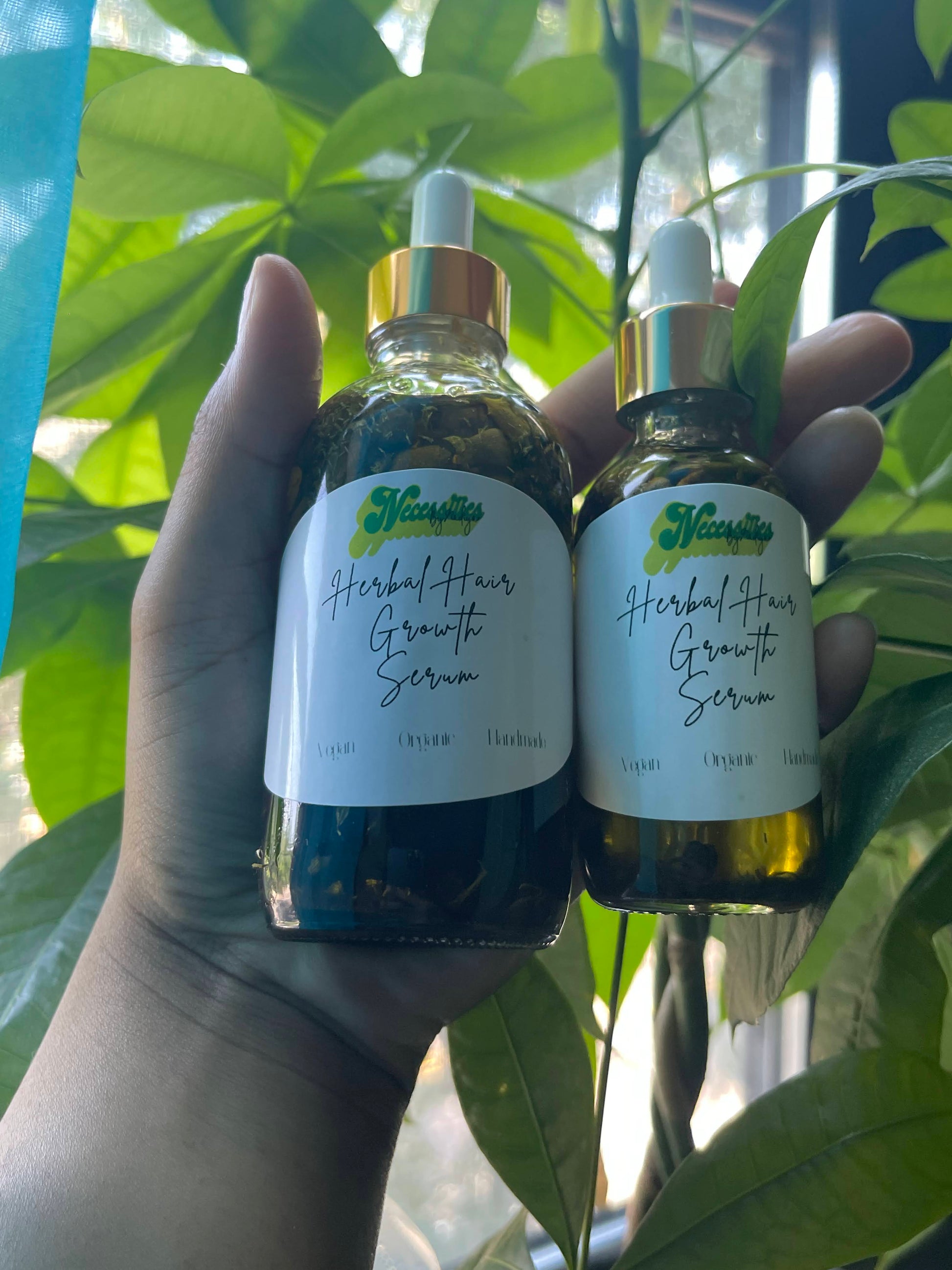 Natural, chemical-free oil infused with several different oils and herbs that promote hair growth, fullness, and health. Each of the oils and herbs has different benefits that make this oil unique and soooo necessary to add to your hair care regimen. The oils in this serum are Sweet almond oil, Jamaican black castor oil, geranium oil, cedarwood oil, and marula oil. It also includes a herbal blend!